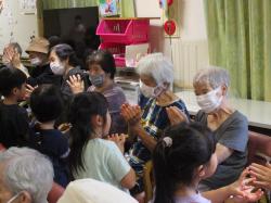 しろとりこども園の可愛いお友達をお呼びし、可愛く元気な歌や踊りを和やかに鑑賞しました。利用者様の間に入ってのお遊戯やじゃんけん大会では、皆さん、はじける笑顔で、生き生きとした笑顔を見せてくれました。やっぱり子供たちとの触れ合いが一番のようです!
