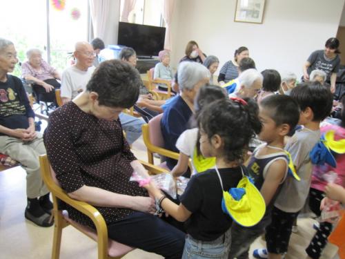 グループホームとデイサービス、小規模多機能ホームでは、それぞれ湊保育園、木太保育所の可愛い園児たちが来てくれ、盛大に七夕祭りを行いました。